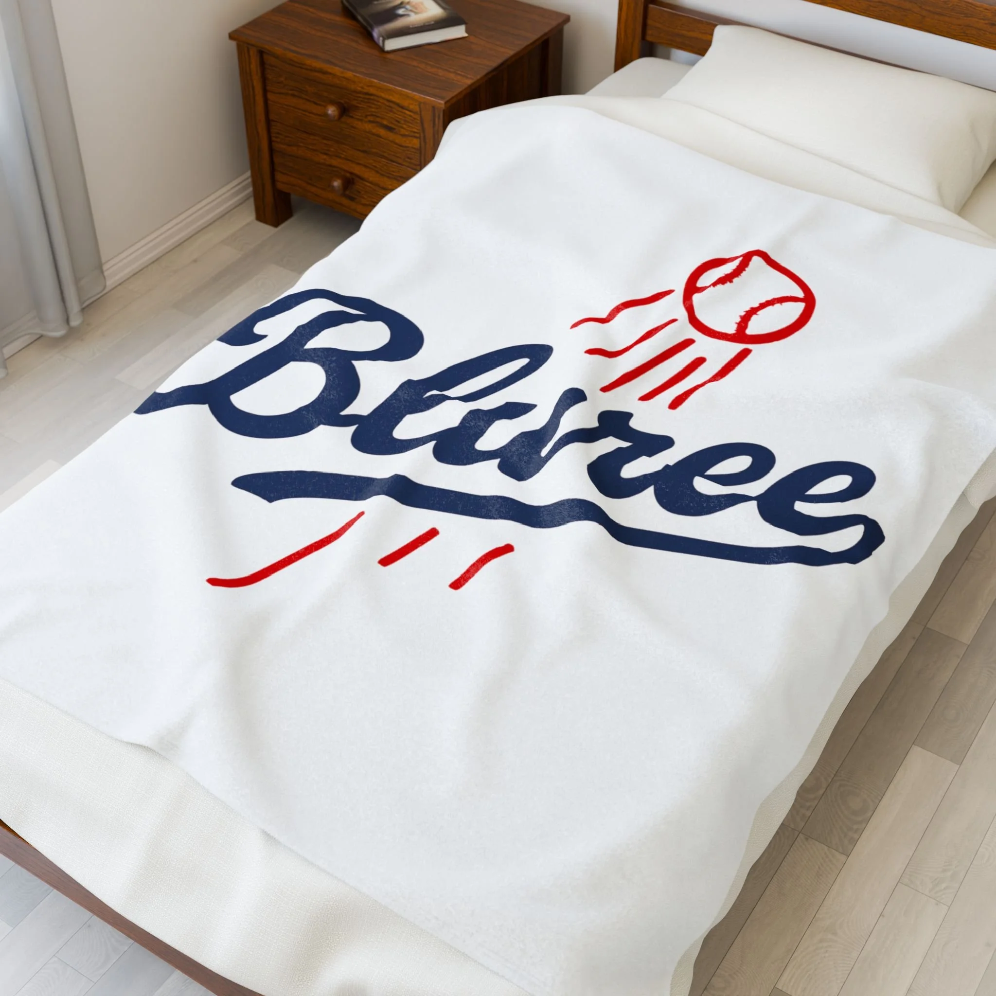 Velveteen Plush Blanket – 'Bluree' Retro Baseball Logo Throw